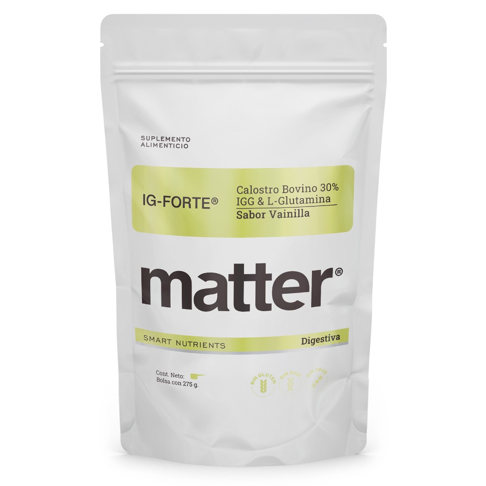 Ig-Forte tiene un calostro de bovino con 30% de IgG (inmunoglobulinas) por gramo.